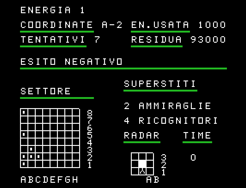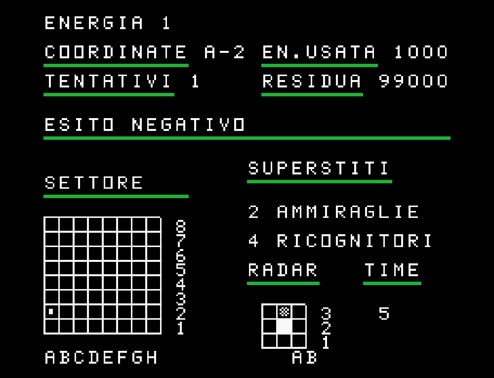 Attenzione che non si tratta di un semplice sparatutto. ALGOL è un gioco di gestione tattica dell’energia, di lettura del radar, di anticipazione dei movimenti nemici. Ogni tiro richiede coordinate precise e una scelta ponderata del livello di energia. Sparare a vuoto sarà inutile ma anche pericoloso!