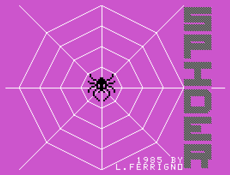SPIDER si avvia con una schermata introduttiva e una sezione di istruzioni. Il movimento dell’omino blu avviene tramite i tasti direzionali ('E' freccia su, 'X' giù, 'S' sinistra, 'D' destra), in perfetto stile arcade. Il giocatore può scegliere il livello di difficoltà prima di iniziare, e modificarlo ad ogni nuova partita. In qualsiasi momento, è possibile interrompere il gioco premendo il tasto ' + '.