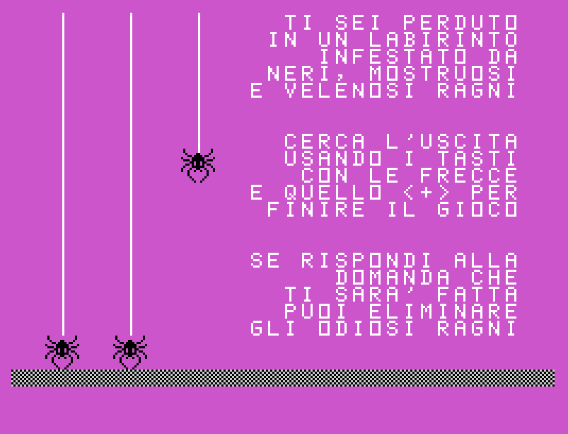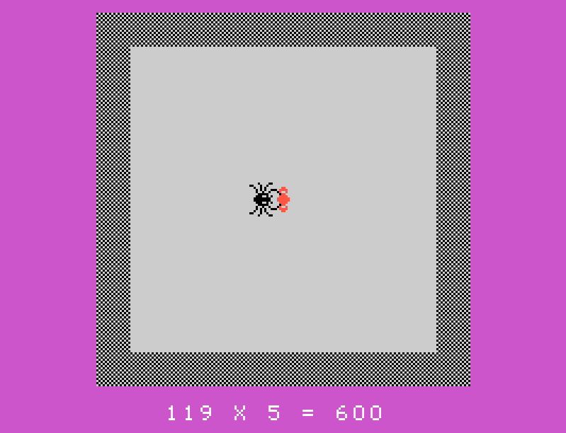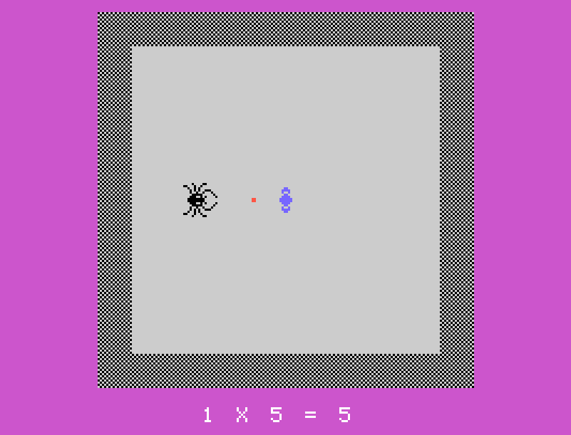 Una volta raggiunto il centro prima del ragno, il gioco proporrà un quesito aritmetico. Rispondere correttamente consentirà di eliminare il ragno e aprire le uscite della stanza, permettendo al giocatore di scegliere con calma la direzione da prendere per proseguire nel labirinto. Al contrario, vari errori nel dare la risposta o l’arrivo del ragno al centro prima del giocatore comporteranno la fine immediata della partita.