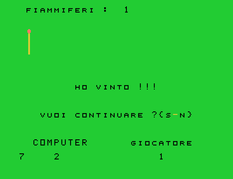 - Si giocherà contro il computer, alternandosi nel prelievo di fiammiferi.