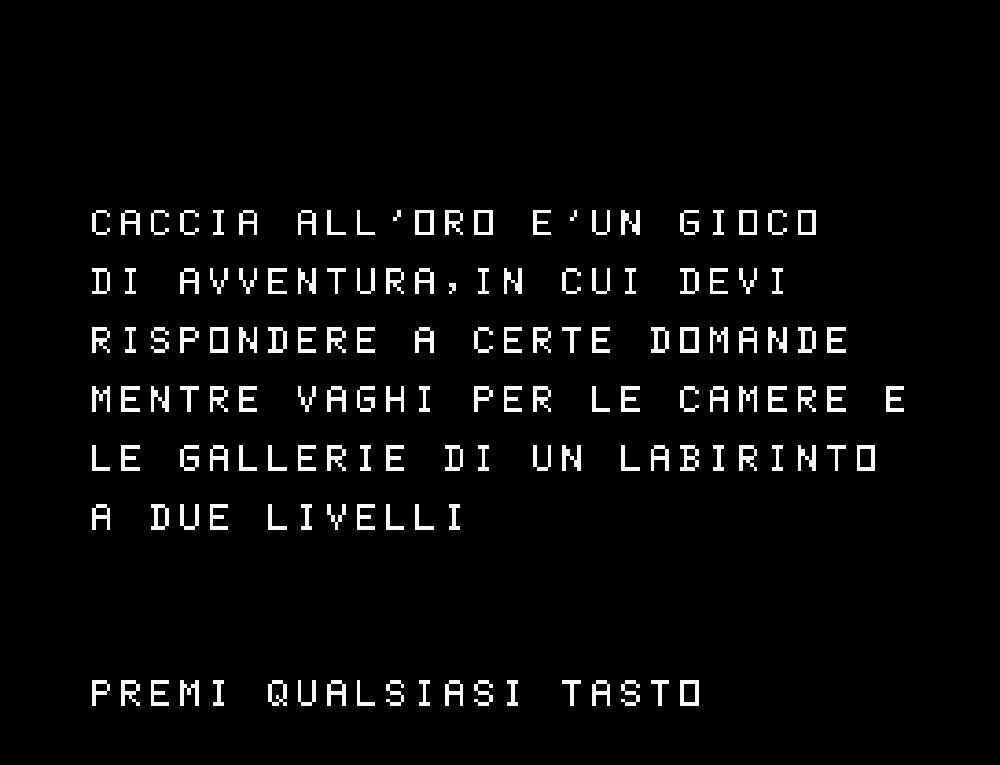 Vi siete mai avventurati in un sotterraneo oscuro alla ricerca di un tesoro nascosto? In Caccia all’Oro potrete farlo, esplorando un labirinto di 128 camere su due livelli, affrontando mostri, ladri e trabocchetti. Il vostro obiettivo? Fuggire con quante più monete d’oro possibile!