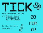 Animazione a scopo pubblicitario di un Club TI99 tedesco dal nome "TICK - Texas Instruments Club Kiel" di Michael Rittweger.