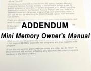 | Addendum Mini Memory Owner's Manual Addendum Mini Memory Owner's Manual Appendice relativo al manuale della cartuccia PHM3058 Mini Memory | Codice: | 1053598-1 | | Pagine: | 1 | | Formato: | Foglio singolo | | Misure: | 19,5 x 13,5 cm | | Anno: | 1982 | | ISBN: | ------ | | Printed in: | USA | La Texas Instruments era solita aggiungere dei fogli di completamento alla documentazione qualora ci fosse stata una mancanza da sottolineare. Questi documenti venivano chiamati Addendum e se ne possono trovare diversi. Qui ne abbiamo un paio (di cui almeno uno sicuramente ufficiale) che riguardano la cartuccia Mini Memory. SFOGLIA SUBITO ! : | Don't understand Italian? Choose your language!  Grazie! Non sono solito ostentare, ma è gratificante ricevere dei feedback e avere riscontro e apprezzamenti sul lavoro svolto nel tempo. Un sentito ringraziamento a tutti. 2022 The John Birdwell Award Categoria Computing 2017 Edgar Mauk Award Categoria Community Guarda il Video Completo... 2014 Rob Tempelmans Plat Miglior Sito Web Leggi tutto... 2012 Edgar Mauk Award Categoria Community  Vuoi aiutarmi preservare la storia del TI-99 ?