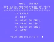 Per creare un file, selezionate 'Enter'. Questa funzione cancella qualsiasi testo precedentemente inserito, poi vi permette di iniziare a inserire il testo a pagina 1, linea 1. Potete inserire fino a 9 pagine con 20 righe per pagina. Alla fine di una riga (28 caratteri max), premere Enter per passare alla riga successiva. Mentre si inseriscono le righe, si possono usare le funzioni: Insert, Delete ed Erase del computer per modificare. Quando avete finito di inserire testo, inserite un segno di uguale ('=') all'inizio di una nuova riga. Una volta che usciti da questa modalità di inserimento, per modificare avrete bisogno della modalità Edit (opzione 2 del menu), attenzione a non premere 1. Enter nuovamente perchè cancellerete il testo appena inserito.