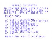 Per esempio, per convertire la temperatura corporea in Celsius, scegliere la prima funzione, premere Invio al prossimo prompt, poi inserisci 98.6. Il computer visualizza il risultato, 37 gradi Celsius.