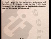 | TI-99/4 Extended BASIC Reference Card TI-99/4 Extended BASIC Reference Card Scheda riepilogativa tascabile del manuale dell'Extended Basic (PHM2036) | Codice: | 1043602-1 | | Pagine: | 15 | | Formato: | Tascabile - Pieghevole | | Misure: | chiusa 15x9 cm aperta 15x71 cm | | Anno: | 1981 | | ISBN: | ------ | | Printed in: | USA | SFOGLIA SUBITO ! :  | Don't understand Italian? Choose your language!  Grazie! Non sono solito ostentare, ma è gratificante ricevere dei feedback e avere riscontro e apprezzamenti sul lavoro svolto nel tempo. Un sentito ringraziamento a tutti. 2022 The John Birdwell Award Categoria Computing 2017 Edgar Mauk Award Categoria Community Guarda il Video Completo... 2014 Rob Tempelmans Plat Miglior Sito Web Leggi tutto... 2012 Edgar Mauk Award Categoria Community  Vuoi aiutarmi preservare la storia del TI-99 ?