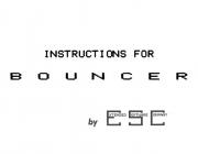 | Bouncer (by Greg Kean) - Instruction Manual Bouncer (by Greg Kean) - Instruction Manual Istruzioni contenute nel package del gioco Bouncer, sviluppato da Greg Kean e pubblicato dalla Extended Software Company. | Codice: | ------ | | Pagine: | 2 (compresa copertina) | | Formato: | Foglio A4 piegato | | Misure: | 28 x 22 cm | | Anno: | 1983 | | ISBN: | ------ | | Printed in: | USA | Queste pagine contengono le istruzioni per il caricamento e le regole del gioco. Sono fogli singoli stampati su entrambi i lati. Erano stampati su carta colorata.