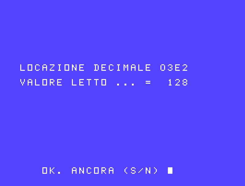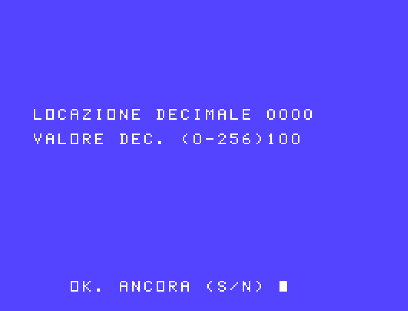 Quando il programma richiede una locazione, l’utente deve inserire l’indirizzo della VDP RAM in cui desidera intervenire. Successivamente, viene richiesto il valore che si intende inserire in quella locazione. Il programma è strutturato per gestire un solo dato per ogni richiesta, ma può essere facilmente modificato per operare su più dati consecutivi. Inoltre, le routine possono essere estratte e utilizzate all’interno di altri programmi creati dall’utente, selezionando solo le parti necessarie.