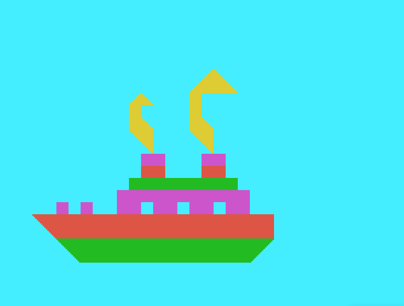 Dopo la schermata del titolo di presentazione — un vulcano stilizzato composto dalle parole che formano il titolo e che "erutta" lettere dell’alfabeto — premendo un tasto, il computer inizierà a far costruire i disegni sullo schermo.