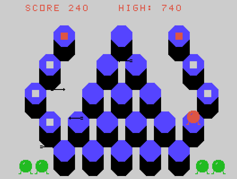 Questo gioco è un gioco in stile Q-Bert ed è molto carino da giocare in Extended BASIC. Non è però un gioco originale di Ezio Montini poiché era stato distribuito negli USA dalla Extended Software Co. con il titolo di BOUNCER e sviluppato da Greg Kean già nel 1983.