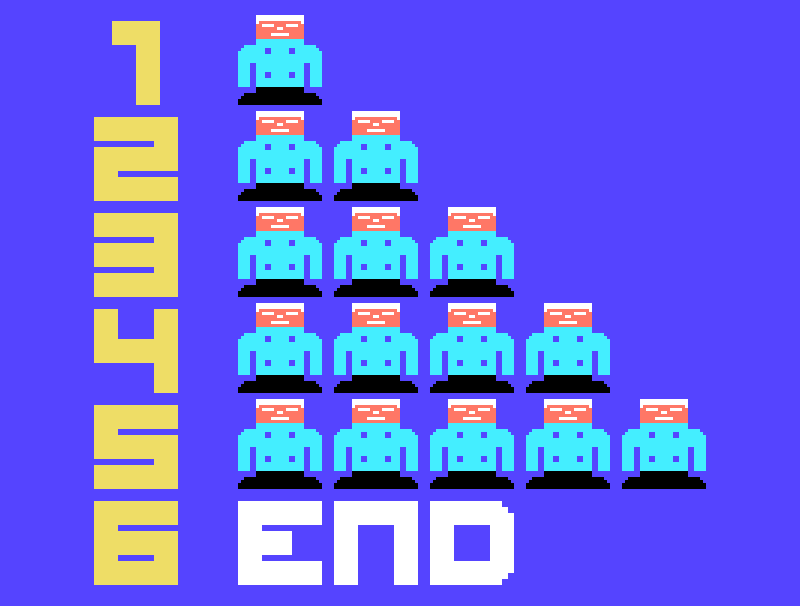 Dopo ogni serie di dieci operazioni si ritorna alle scelte iniziali ed a questo punto è anche possibile interrompere il gioco scegliendo l’opzione 6 (END), che segue i livelli di difficoltà.
