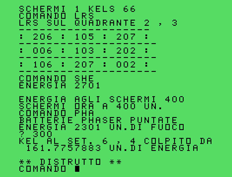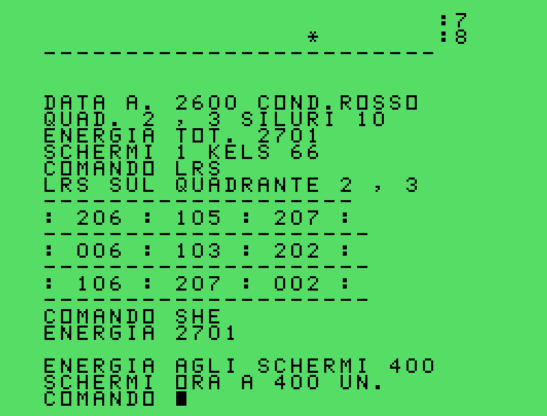 Il cuore del gioco è il calcolatore di bordo, che accetta comandi testuali e restituisce informazioni vitali. Ogni input è un atto di strategia. Ecco i principali: