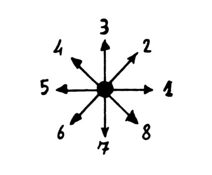 La figura direzionale del gioco assegna numeri da 1 a 8 alle direzioni cardinali e diagonali. Questa logica direzionale è fondamentale per navigare, attaccare e lanciare siluri con precisione.
