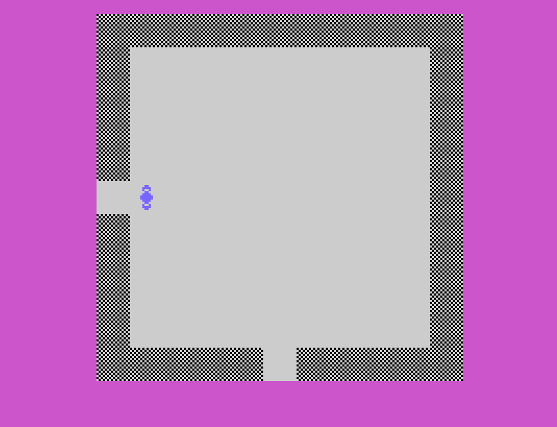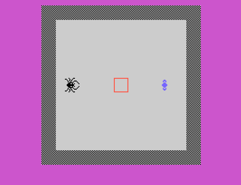 Il giocatore impersona un omino blu visto dall’alto, immerso in un labirinto composto da 100 camere. Ogni stanza è un campo minato di tensione: oltre alla complessità del percorso, il pericolo maggiore è rappresentato dai ragni giganti, il cui morso è letale. La sopravvivenza dipende dalla rapidità con cui si raggiunge il centro della stanza, contrassegnato da un quadrato rosso.