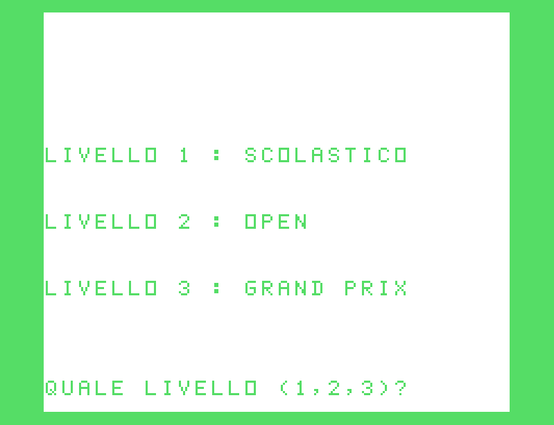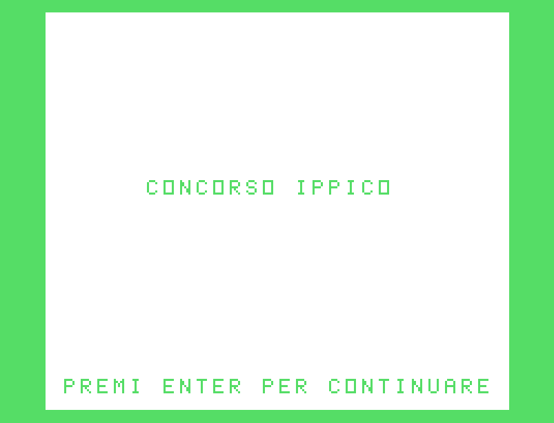 Un gioco di simulazione di corse ai cavalli, ma non il solito dove devi solo puntare soldi, stavolta il cavallo lo devi saper domare! Servirà abilità e strategia in questo gioco sviluppato da Paolo Civardi per il TI-BASIC che venne anche pubblicato nella rivista italiana TI99Newsoft di Ottobre/Novembre 1985.