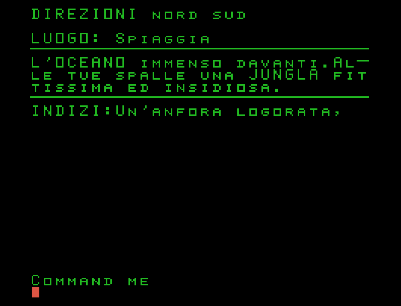 Il gioco accetta comandi nella forma <VERBO>+<OGGETTO>