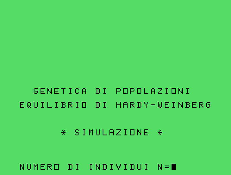 Il terzo programma entra nel cuore della genetica. Simula la trasmissione dei geni da una generazione all’altra secondo la legge di Hardy-Weinberg, che descrive l’equilibrio genetico in una popolazione ideale.