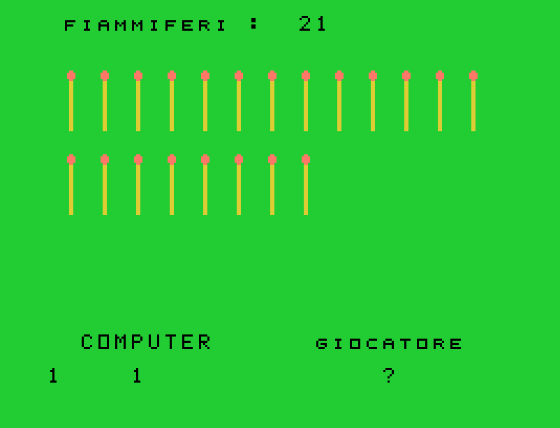 - Si giocherà contro il computer, alternandosi nel prelievo di fiammiferi.