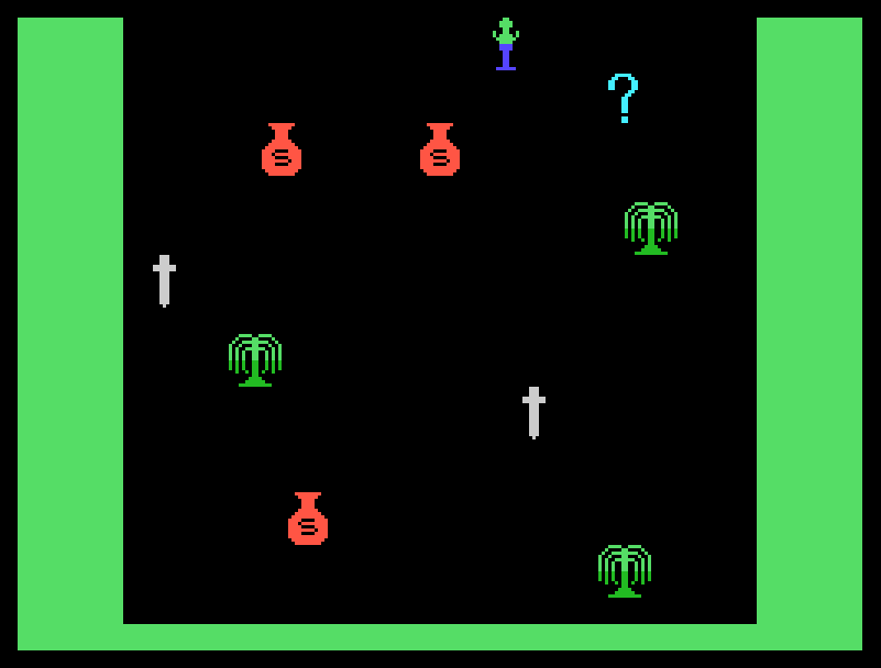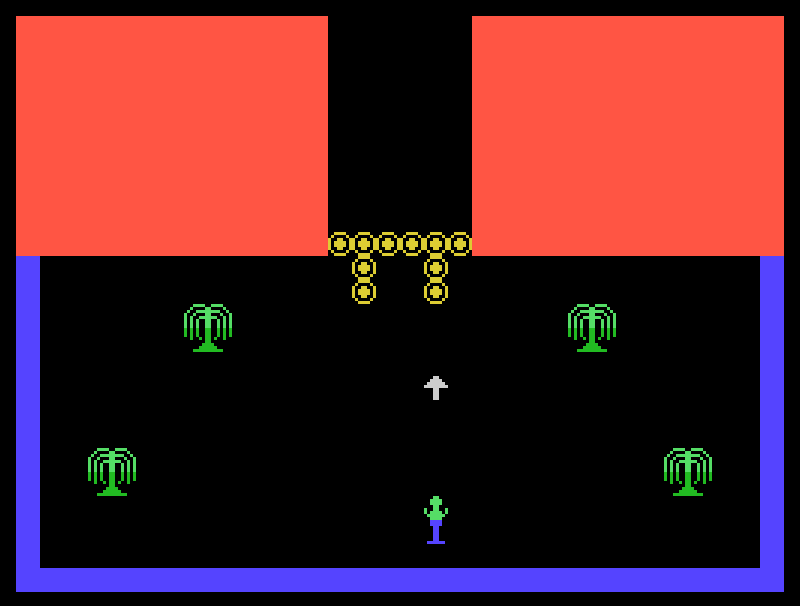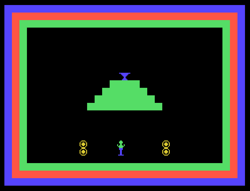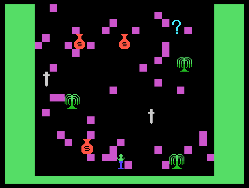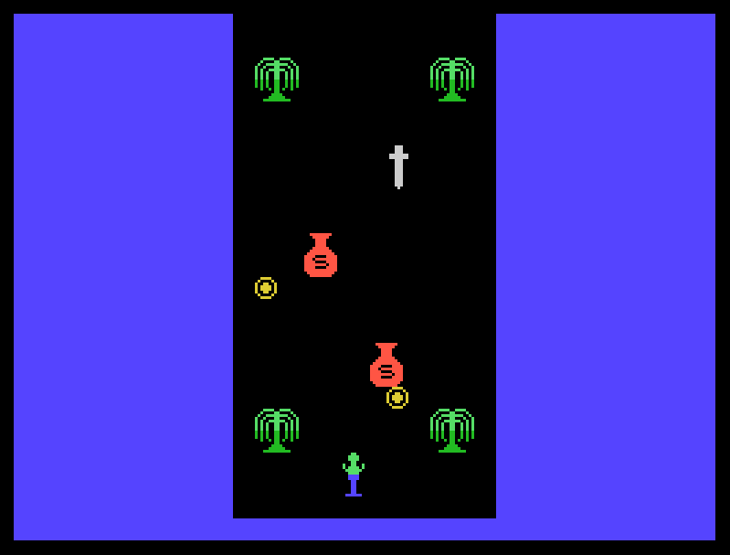 Vestirete i panni di un esploratore, e vi trovate in una landa sperduta, piena di insidie, alla ricerca dell'ambitissimo Sacro Graal custodito dagli indigeni nel Tempio Maledetto. Elvin, il vostro nemico, non solo vi precede, ma dissemina il percorso di trappole che possono uccidervi ma anche di spade d’argento e sacchi di denaro per indurvi in tentazione Attenzione: raccogliere uno di questi oggetti di valore vi riporterà all’inizio del quadro che statrete giocando.