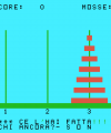Il programma tiene traccia delle mosse effettuate nel tentativo di risolvere il rompicapo e visualizza graficamente i tre pioli con i sette anelli. Vi rimprovererà perfino se cercate di barare con le mosse! Non scoraggiatevi se le prime volte impiegherete più di un centinaio di movimenti: io ne ho fatte 168!